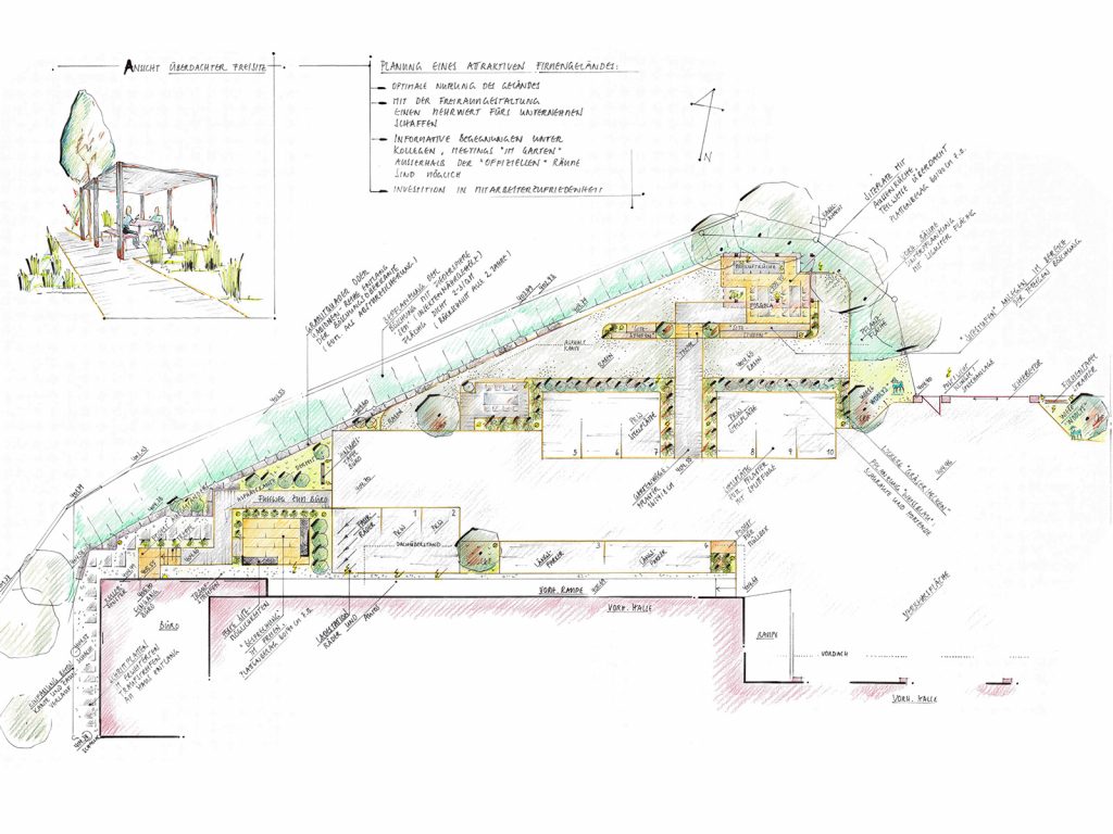 Planung Firmengelände, Außenanlage Büro