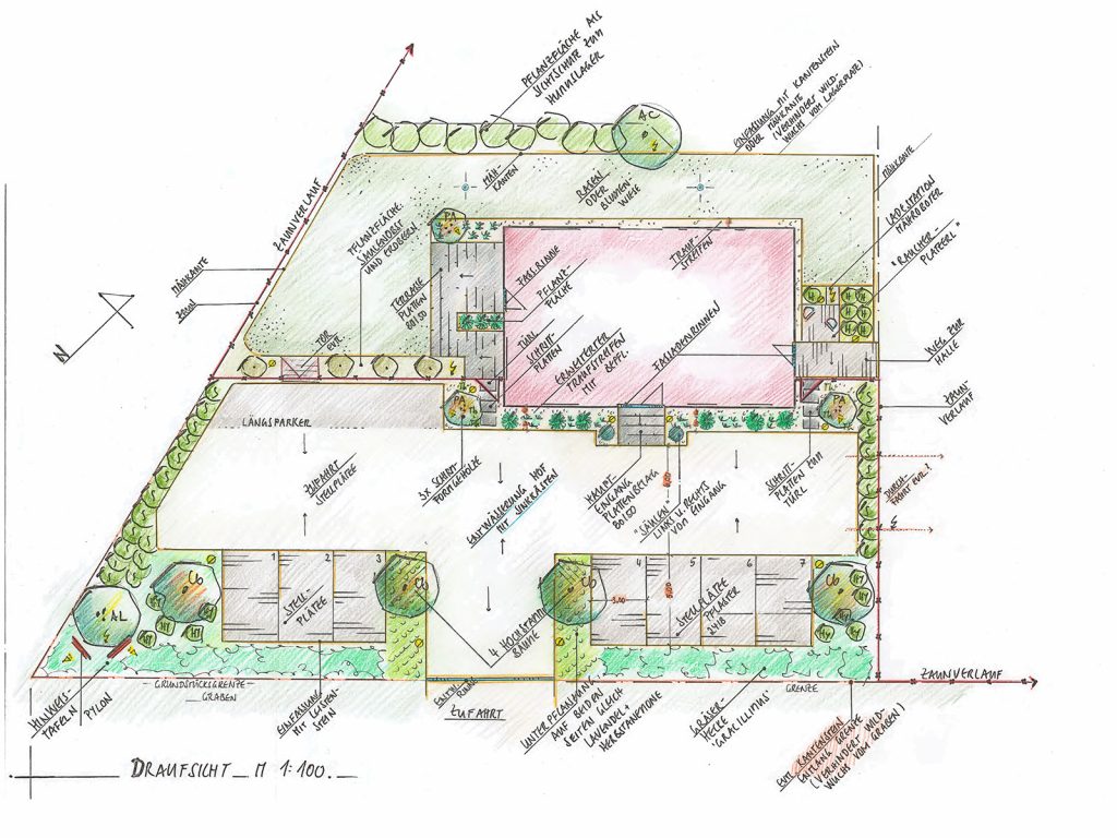 Plan zur Gestaltung und Bepflanzung der Aussenanlagen